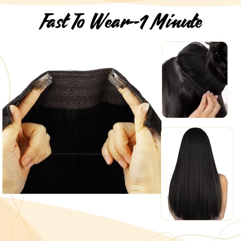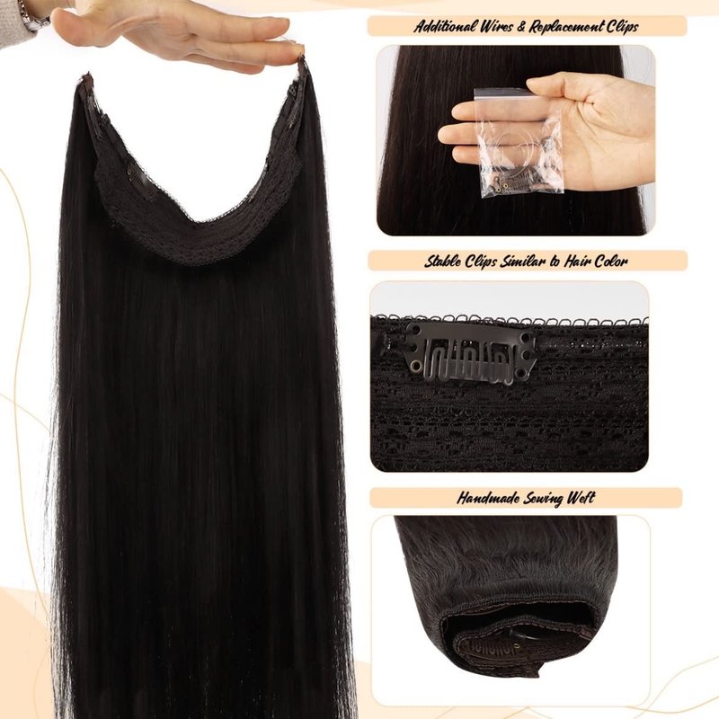 - [CONVENIENT & EASY TO WEAR OR REMOVE] - Unlike traditional PU hair and clip hair, our wire hair extensions with transparent string has no glue, and you can wear it fastly within five minutes. The wire stretchy,then you could adjust conveniently the looseness according to your head circumference. So you won’t feel tight or any discomfort.