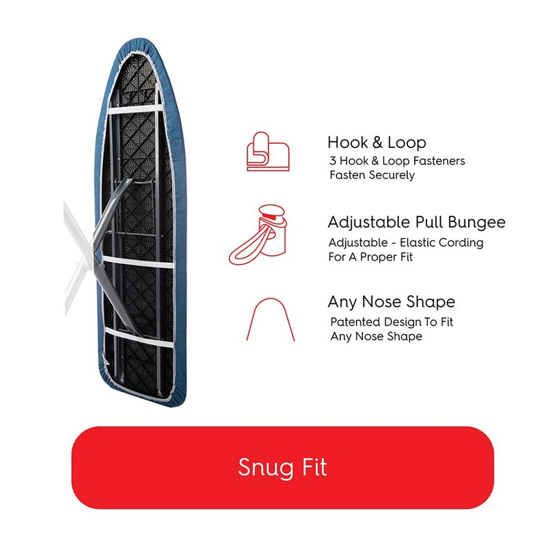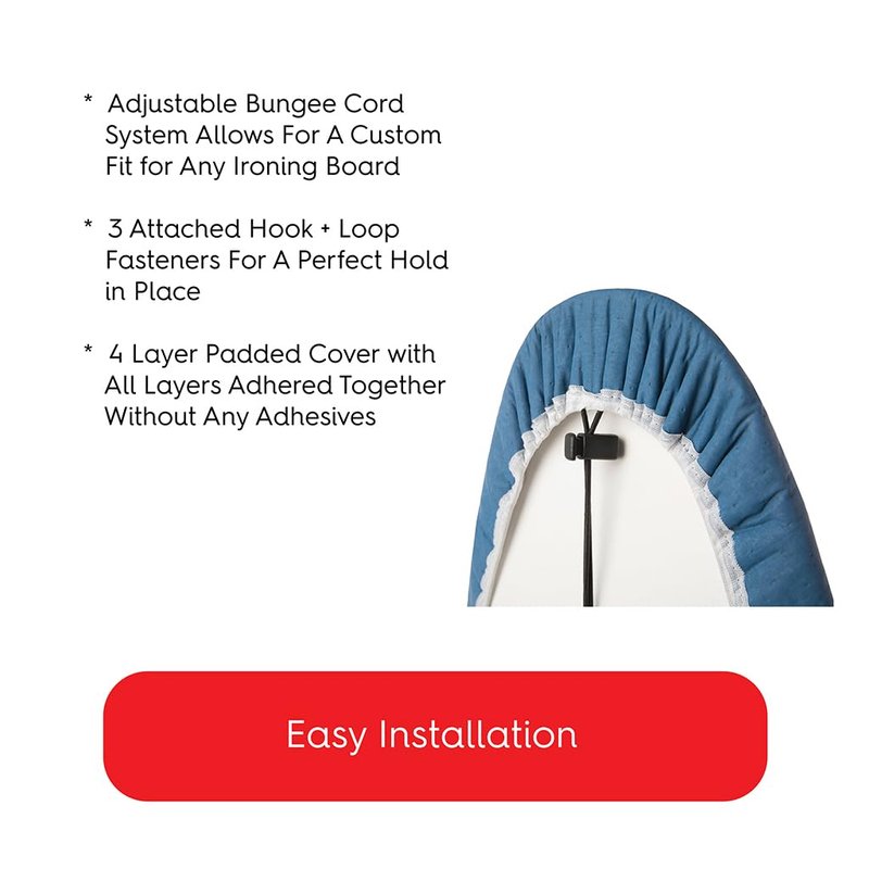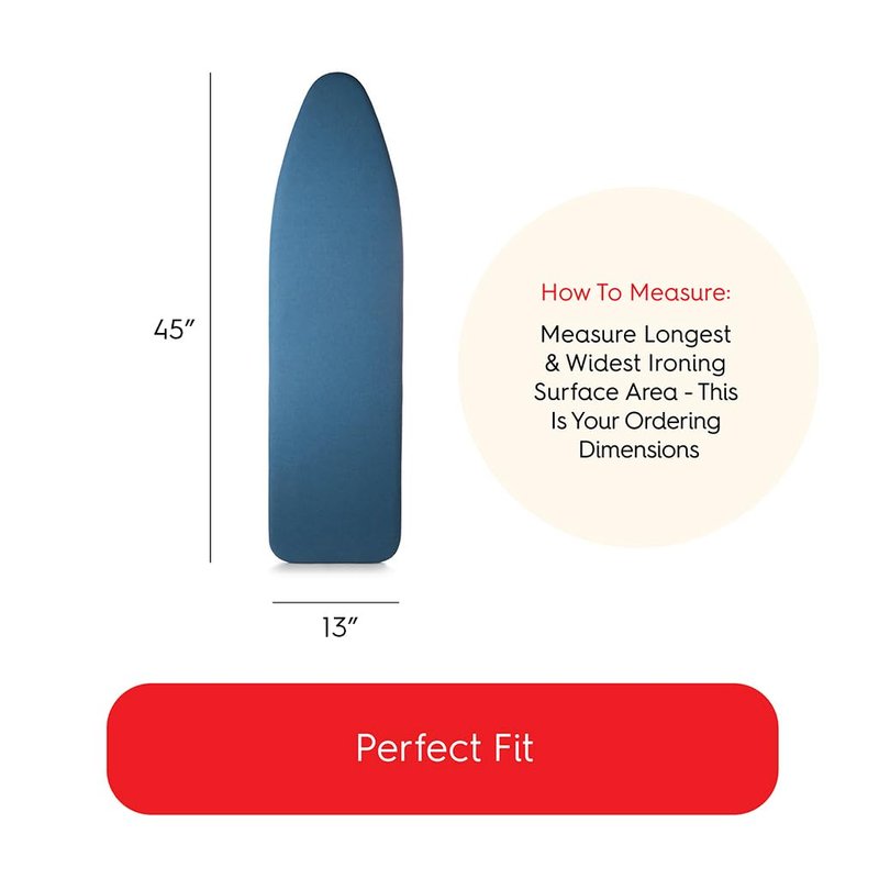 TIVIT Ironing Board Cover 13 x 45, Performance Grade Titanium Coated Pro Grip Pad & Covers - Superior Scorch & Stain Resistance, High Heat Reflection, 3 Padded Layers 3 Fastener Straps - Made In Italy