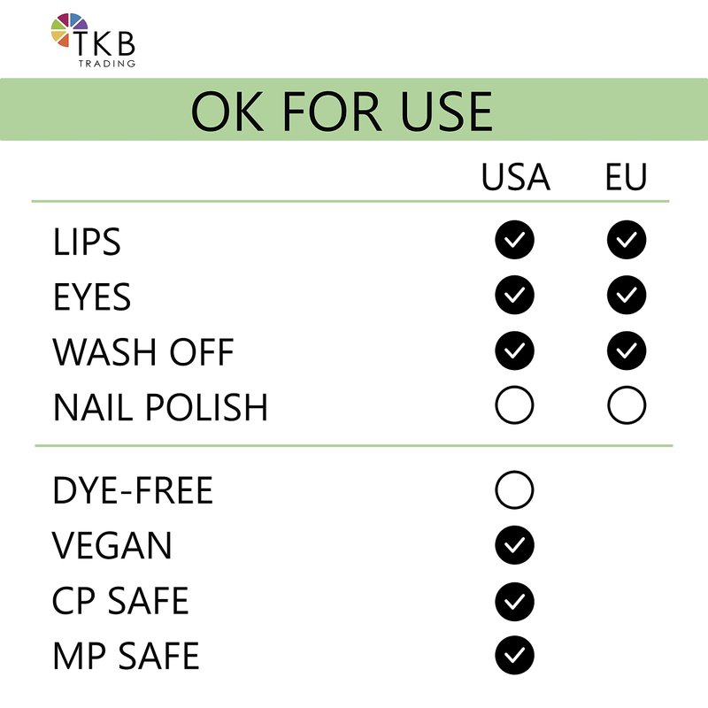 - TKB Lip Liquids are made in the USA from cosmetic grade dyes and pigments pre-dispersed in castor oil.