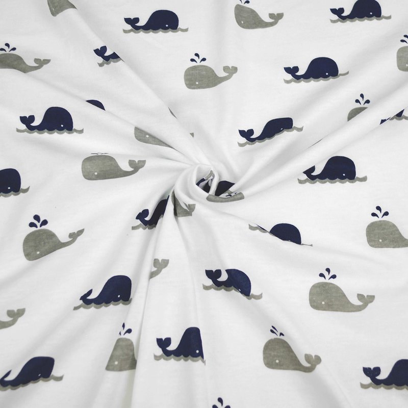 TL Care 2 Pack Fitted Pack N Play Playard Sheet 27" x 39", Soft Breathable Neutral 100% Cotton Jersey Pack and Play Sheet, Navy Whale/Gray Zigzag, for Boys and Girls, Fits Most Mini Crib