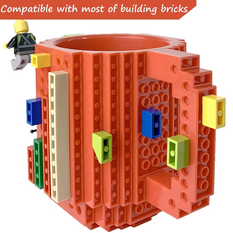 - 【BUILD WITH YOUR IMAGINATION】 New edition build-on brick mug is compatible with most of bricks like LEGO, PixelBlocks, Mega Bloks, KRE-O, or K'NEX Bricks, etc. You can build bricks on all the sides to make your own coffee mug.