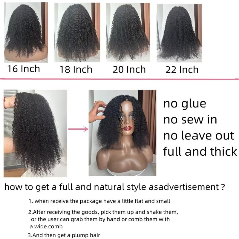 Tmbitto V Part Wigs Human Hair 180% Density Upgrade U Part Human Hair Wig V Part Curly Wig Human Hair Clips in Half Wigs NO Glue No Leave Out Afro Kinky Curly Wigs Human Hair Natural Color 20 Inch