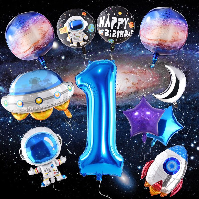 - 🌌Package Include:Space Party Favor Kit include 1x Astronaut Balloon,1x rocket foil balloon,1x UFO Balloon,2x Space Balloons,2x17.7 inch happy birthday astronaut foil balloon, 1x 18inch silver Moon foil balloons, 2x18inch star foil balloons, 1x 40inch Space number 1 balloon,it total 11 pcs
