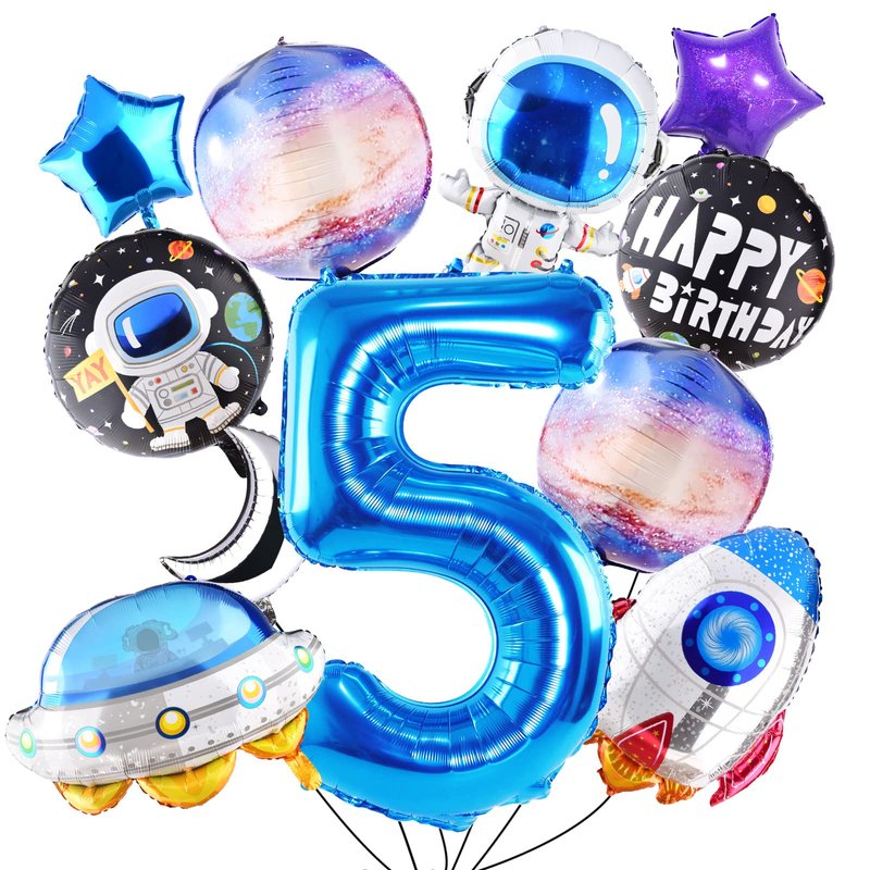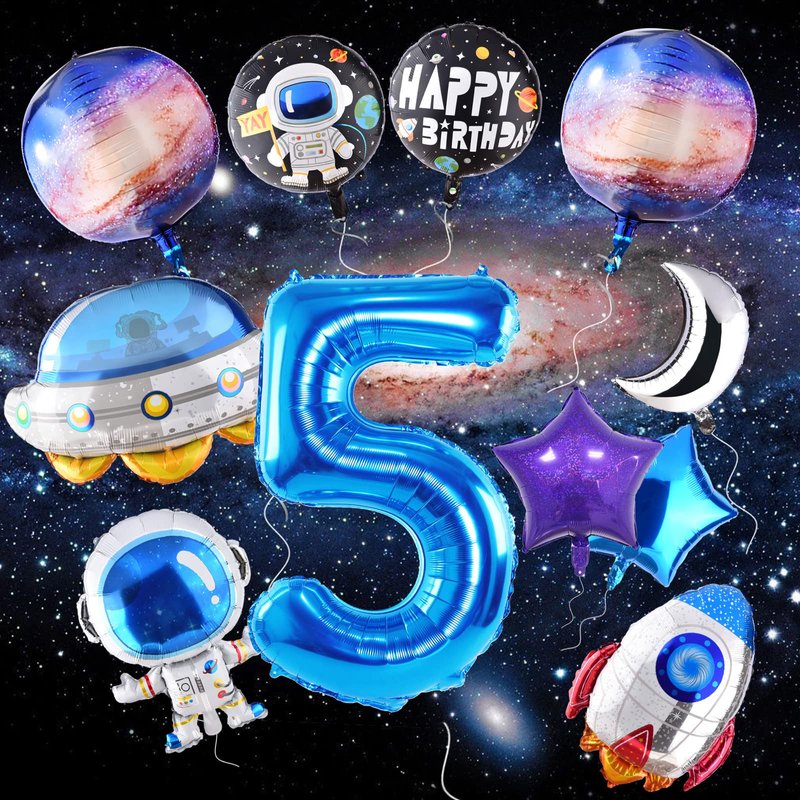 TMCCE 11 PCS Space theme Birthday Party Decoration Astronaut Spaceman Foil Balloons For 5th Outer Space Birthday Party Supplies (Blue-5th)