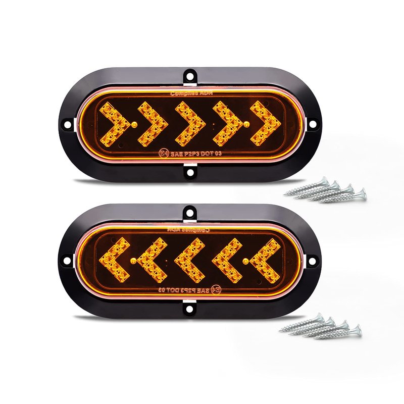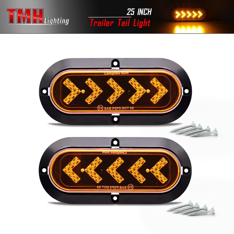 TMH (Pack of 2 6 Inch Oval ARROW Amber Light Turn Signal Tail Indicator Light 25 LED Sealed Marker Lights suitable for Truck Trailer Dump Truck Bus 12V DC