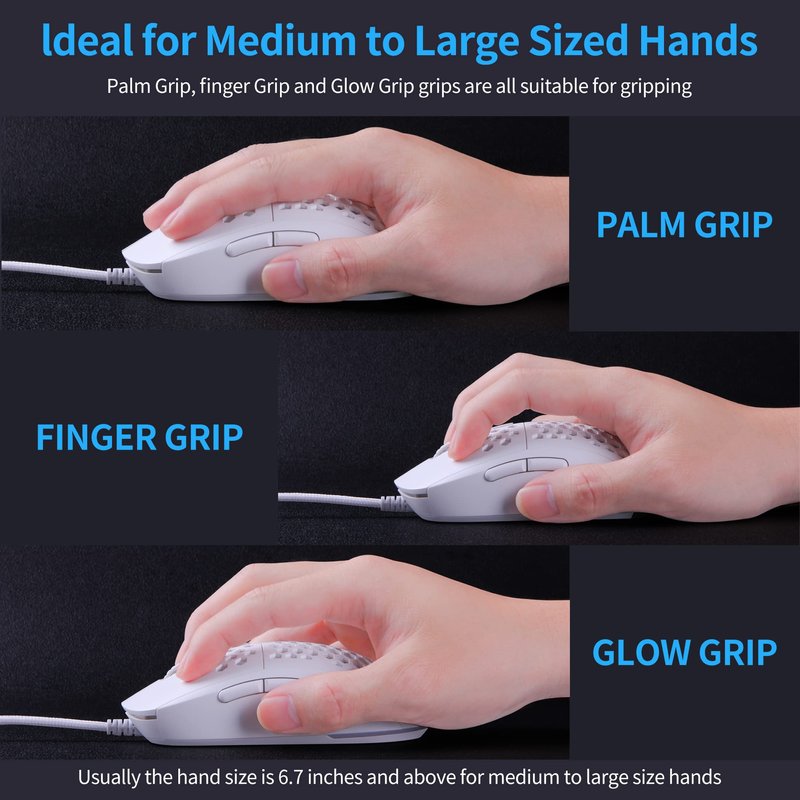 - ✅Ultralight Honeycomb Gaming Mouse: A medium size that most people can easily hold, an ultra-light weight of only 75g, and an ergonomic honeycomb design for comfortable grip and operation in games and offices