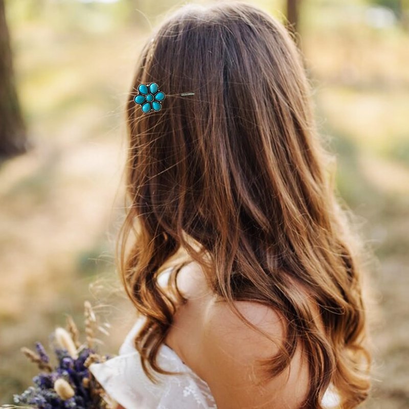 - 【Material and size description】:Color retention electroplated alloy clip.Turquoise beads.Turquoise flower diameter 0.9 inches .clip length 2.8 inches.