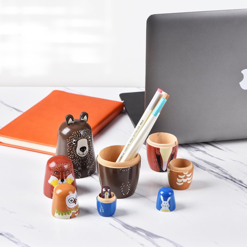 - 【Lovely Cartoon Appearance】Matryoshka nesting dolls contain 5 animals of different sizes, including dog, polar bear, elephant, fairy, brown bear, etc, placed one inside the bigger one, and appear as one