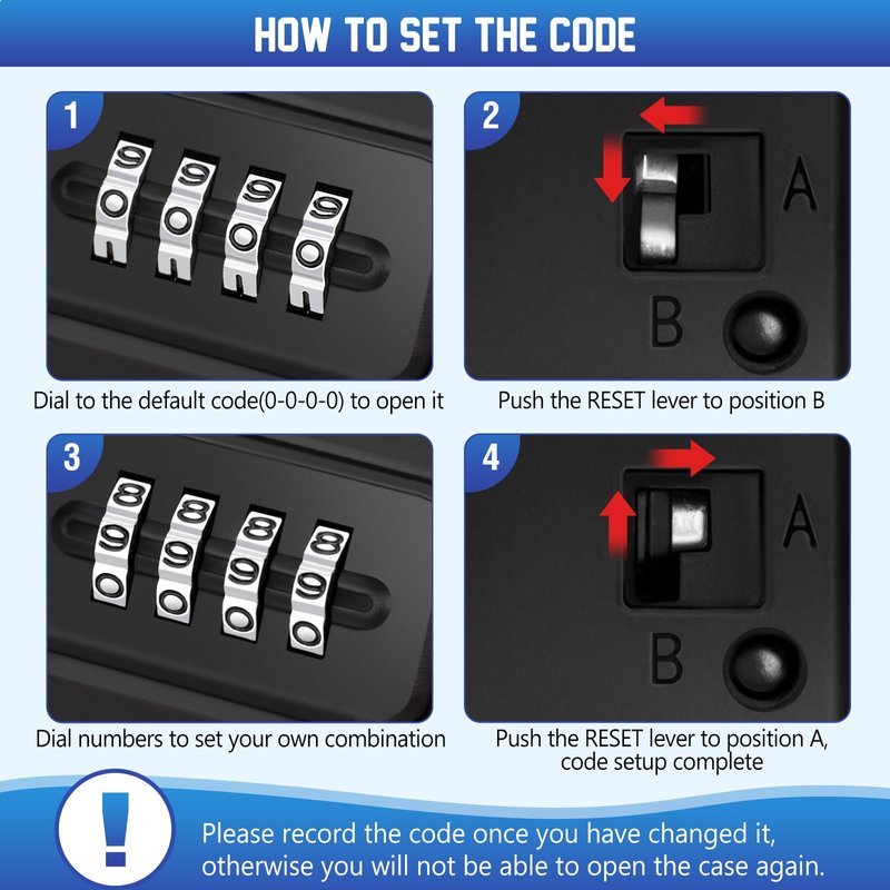 - Maximize Your Security: The security box features a 4-digit combination that offers 10,000 possible combinations that are difficult to crack; Password can be reset to enhance confidentiality. After resetting the combination, you need to take a photo to record it, otherwise you will not be able to open the mini travel safe box again
