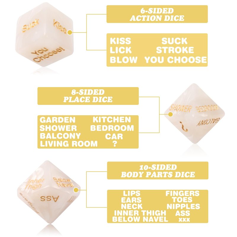 - 【Anniversary Gifts for Him Her】Our couples dice can help couples reconnect and ignite their passion for each other. In the game, players take turns to roll the dice that contain romantic challenges and activities designed to bring them closer together.