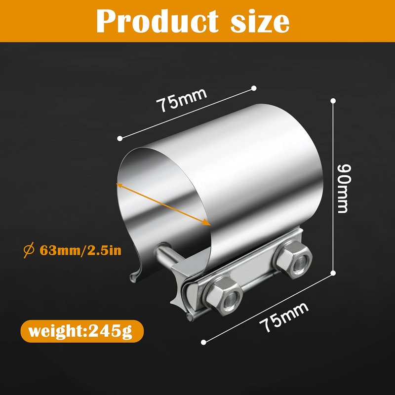 - Premiun Materials:The exhaust clamp is made from high quality stainless steel, stainless steel material, not easy to rust, corrosion-resistant,Precision-machined, shiny surface with no burr