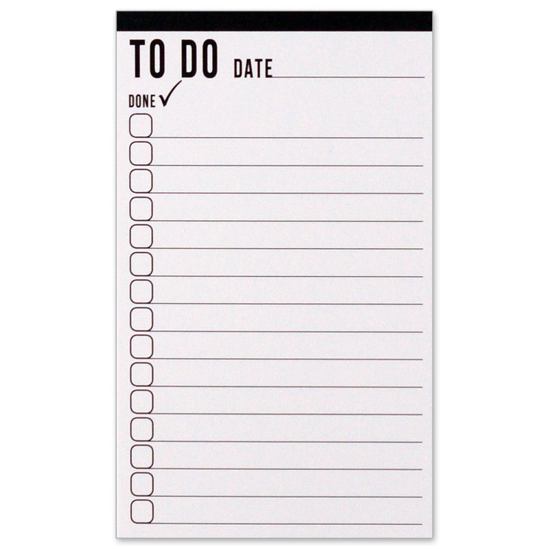 - DONE box to check off completed tasks, 15 Ruled Rows per side, Date line.