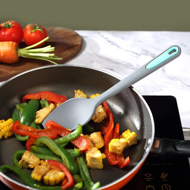 - One-piece Seamless Design - Keep it sturdy without break case and easy to clean. The perfectly angled head and unique two color combination designed handles will not scratch your non-stick cookware or burn your hands during use, easy to storage.