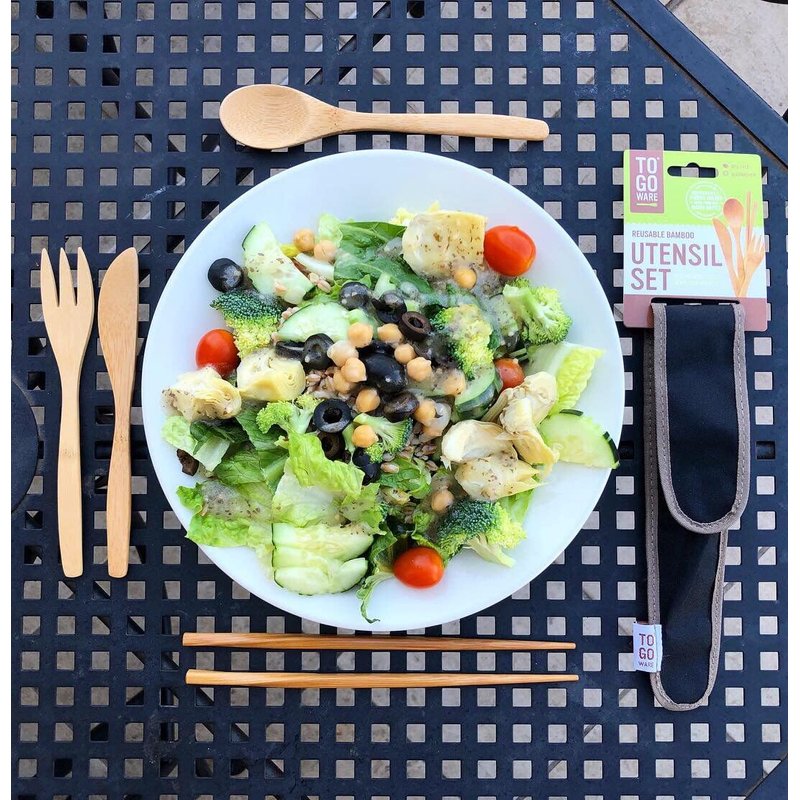 - CONVENIENT DESIGN: The To Go Ware bamboo utensil set includes a knife, fork, spoon, and chopstix for any meal, any time; Keep a set of bamboo utensils in your bag, glove compartment, lunch box or desk