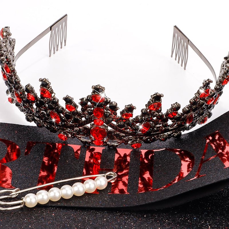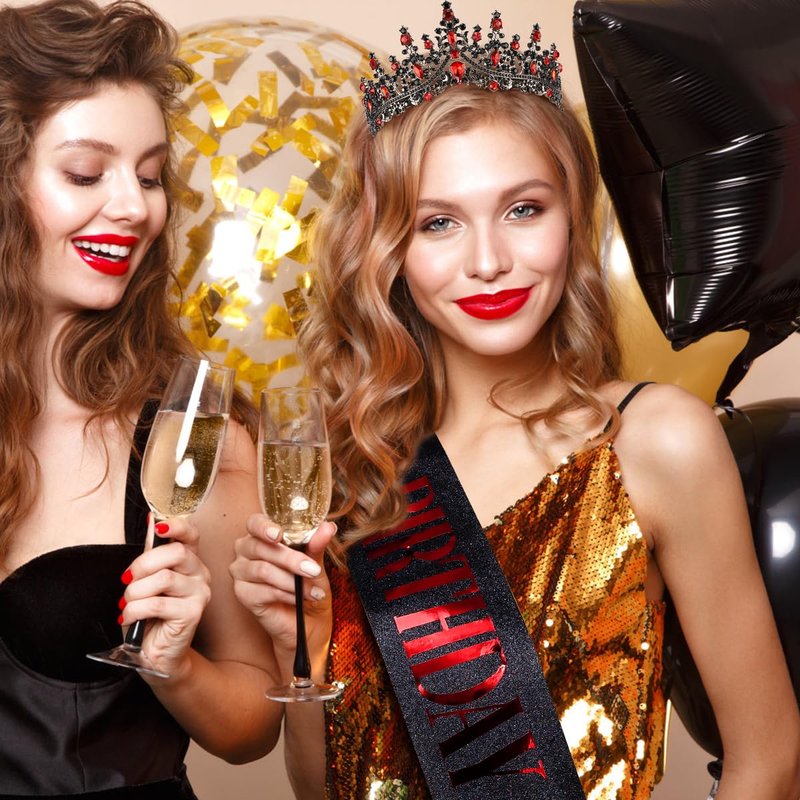TOBATOBA Birthday Sash Birthday Crowns for Women Girls, Birthday Girl Sash and Tiara Set, Red Black Birthday Crown and Sash for Women, Princess Birthday Decorations Birthday Gifts for Girls