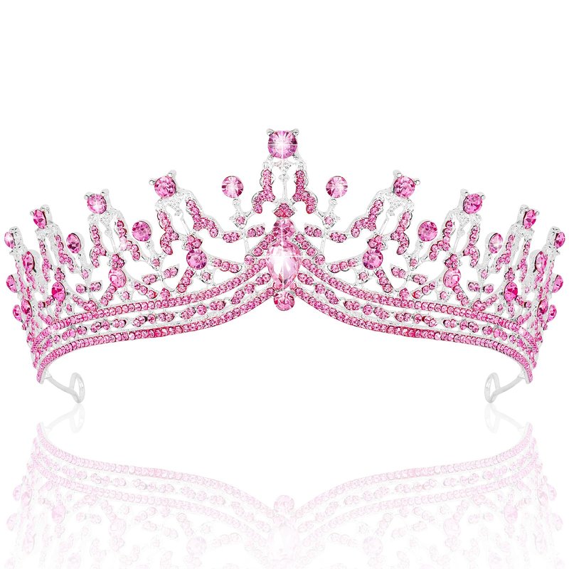 TOBATOBA Tiara Crown Pink Tiaras for Women Princess Tiara Wedding Crown for Bride Queen Crown Pageant Crown Birthday Crown Birthday Tiara for Women Crystal Tiara for Prom Halloween Cosplay Party