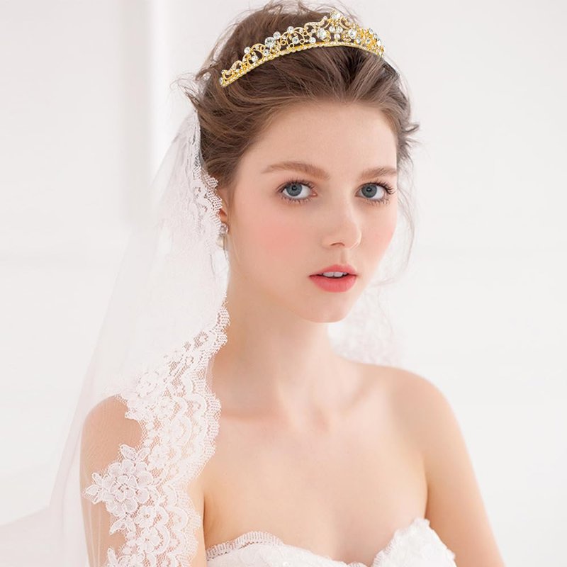Wedding Tiaras for Bride, Gold Tiaras and Crowns for Women, Princess Tiara Rhinestone Bridal Tiara, Small Tiara, Quinceanera Tiara Birthday Pageant Wedding Halloween Costumes