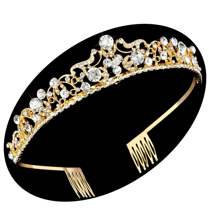 - ♕ Size - Sparkly bridal tiara is gold, approximately 1.2 inches in height, 5.3 inches in diameter, perfectly fit for any age women and teen girls. Smooth bottom will not hurt your scalp. And with bobby pins, help to keep the tiara securely on your head and not easy to fell off.