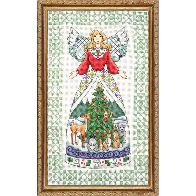 Tobin DW2809 Counted Cross Stitch Kit, 9 by 15-Inch, Winter Angel-Jim Shore ,Green, 14 Count