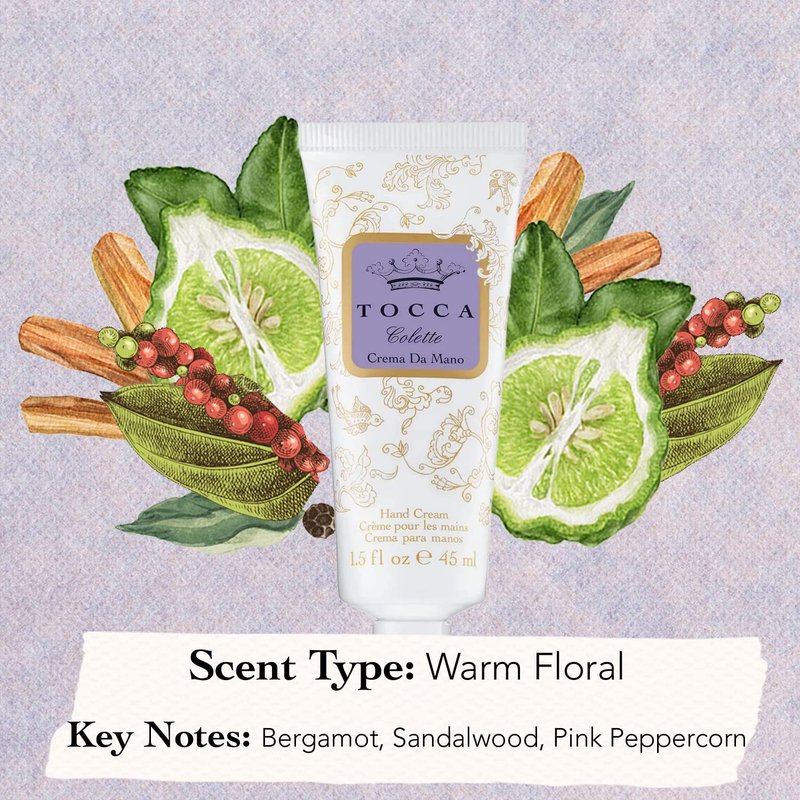 - Colette: Bergamot, Sandalwood, Pink Peppercorn