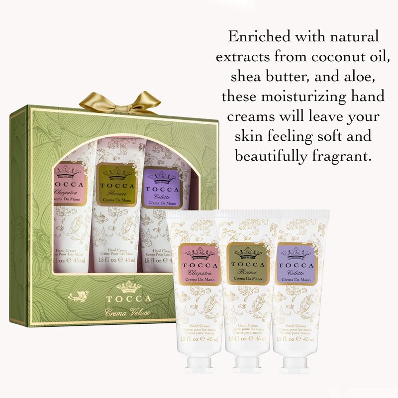 Tocca Wonders Collection - Crema Veloce Mini Hand Cream Set of 3 - Includes Florence, Colette, and Cleopatra - Moisturizing Hand Cream, Each 1.5 oz