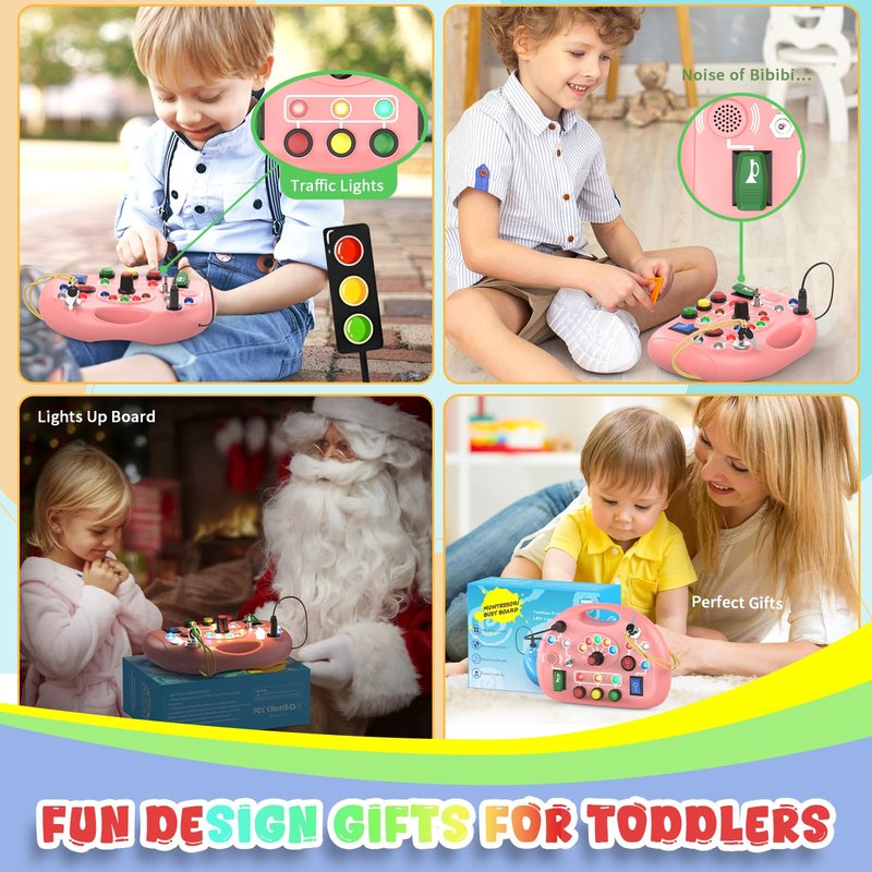 Toddler Busy Board with Led Light Switch, Travel Sensory Board Montessori Toys for Toddlers 1-3 Year Old, Baby Educational Activities Travel Essential Toys Ideal Christmas & Birthday Gift (Pink)