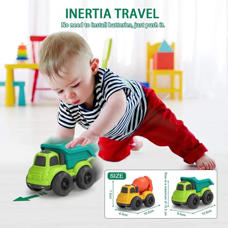 - Great Size for Toddler Hands: Designed just right for toddlers' hands, toddler toys size matches the size of the child's grip when playing. The trucks can go a long distance with just a slight push. Exercise your child's fine finger skills.