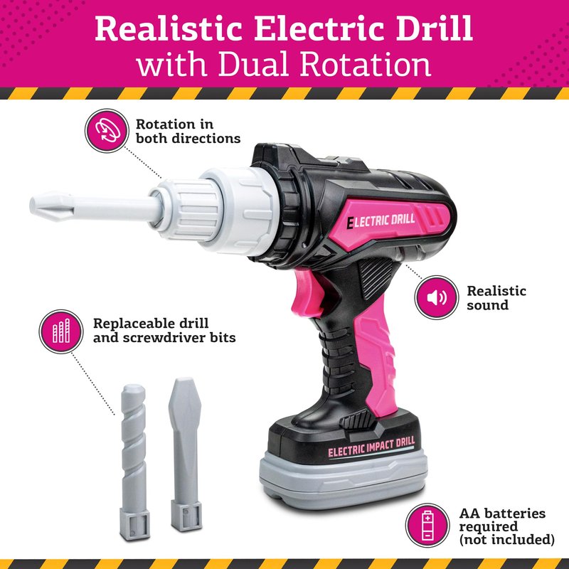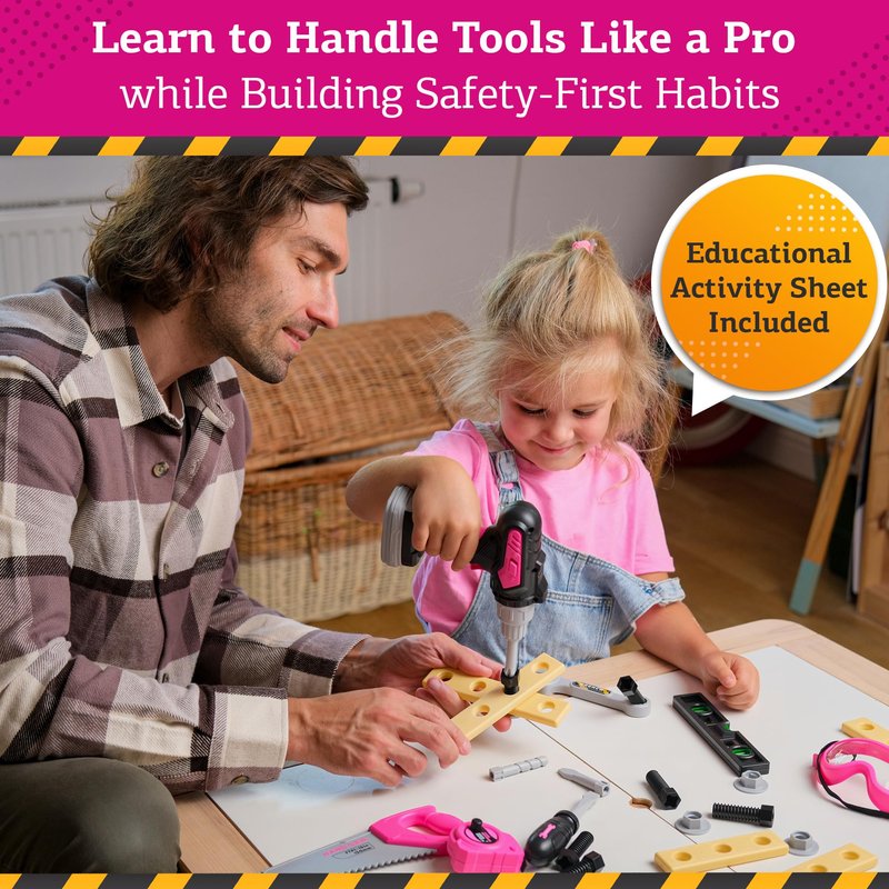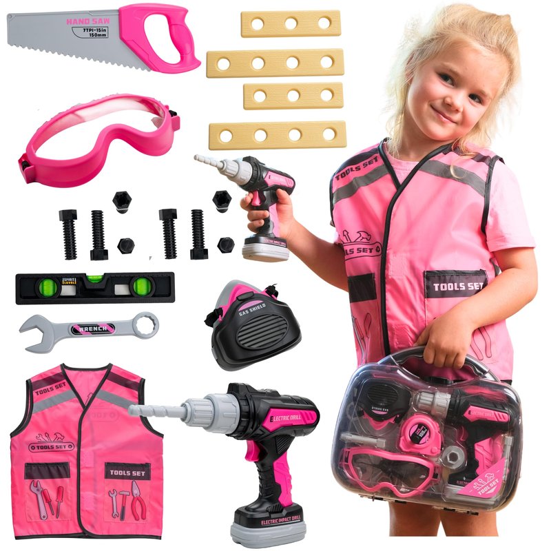 Pink To Tool SUnleash the creativity of your little builder with this all-in-one kids tool set, ideal for toddlers ages 3-6. Featuring a battery-operated drill, saw, screwdriver, and a complete toddler tool box, this set is perfect for imaginative construction play. Safety comes first with protective glasses, a mask, and a vest. Designed for durability and educational fun, this tool kit helps develop motor skills and encourages learning. Whether they're playing with toddler tools or enjoying pretend play, this tool box for kids is a great gift!et For Kids