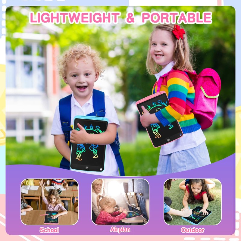 - PORTABLE KIDS TRAVEL ESSENTIALS: Drawing tablets for kids is made of durable plastic, plus round corner design, anti-fall and anti-shock, no need to worry kids drop it. Toddler boy toys weights only 350 grams, easy to carry, 10 inch can be placed in bags. It's excellent for kids' road trip, car activities, airplane, restaurant, long drives, etc.