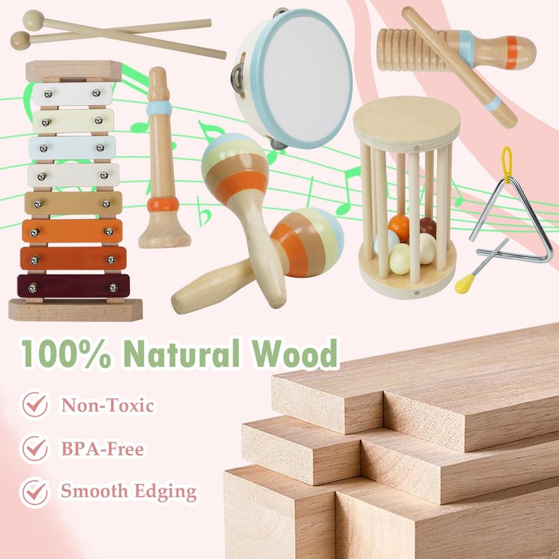 - 【Baby musical instruments】Kid musical instrument,Our baby musical instruments is Raw wood production, being 100% BPA-free,Carefully polished, with a smooth and delicate surface safe,non-toxic,easy to clean.All of baby instruments have passed the most stringent CPC,Children can use this product with confidence