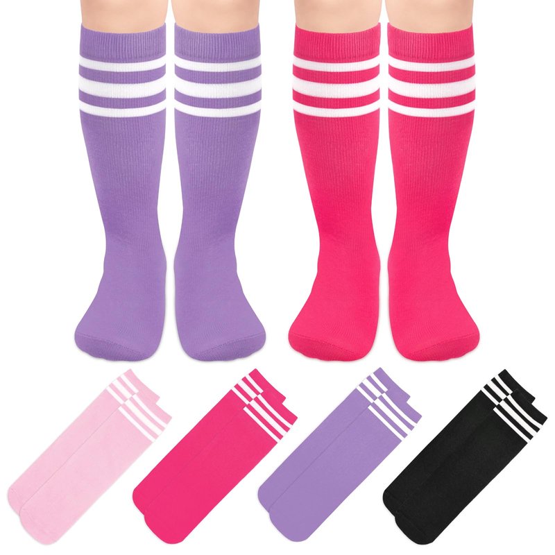 - PERFECT ELASTICITY: Designed with wonderful elasticity, the boys soccer socks can be stretched to provide kids with a comfortable feeling. What's more, the elastic design makes it easy to put on and off for chidren. Besides, the appropriate thickness of the girls soccer socks does not make children feel cold even in cold weather.