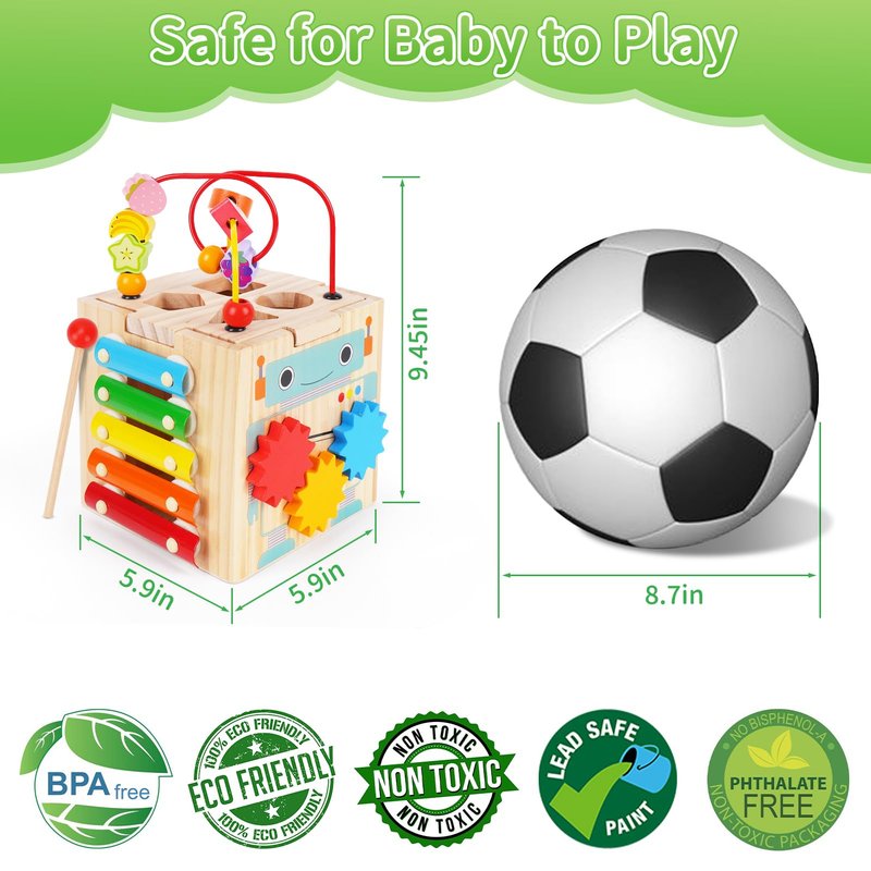 - 【Baby Activity Cube】Our wooden activity cube for 1 year old boy girl offers 8 playful modes: map matching, blind box, bead maze, xylophone, clock learning, shape sorting, rotating gears & block classification. This toddler educational toys 1-3 fosters logical thinking, & problem-solving skills through exploration.
