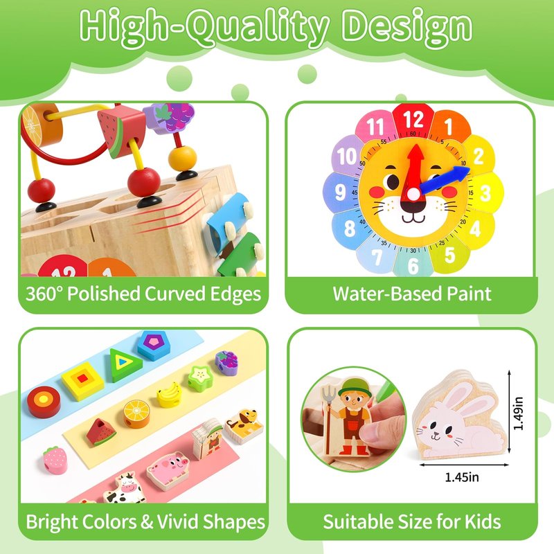 - 【Safe and Durable】This activity cube for toddlers 1-3 girl is made of wood with rounded edges and uses a smooth, non-toxic water-based paint that will not break while playing. All small parts are firmly fixed, and parents don't need to worry about their kids age 1 2 3 accidentally swallowing them.