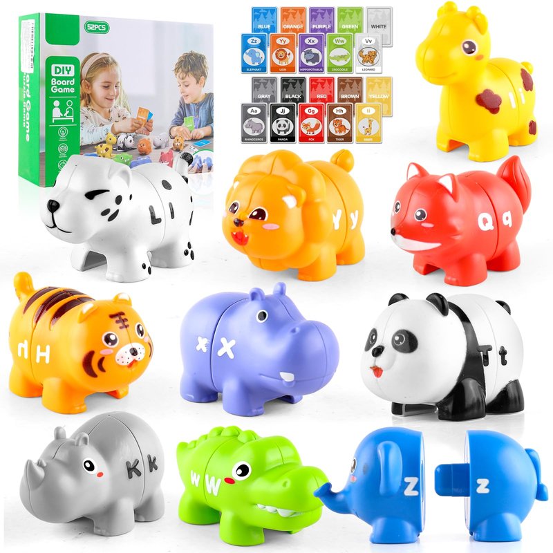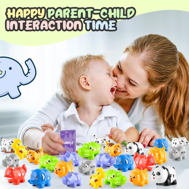 - Animal Alphabet Matching Toys: This learning toy features 26 animals and 26 cards, each with an animal and its color name. Kids can mix, sort, and match the toys. Bright colors and cute designs make learning ABCs and colors fun and interactive for kids