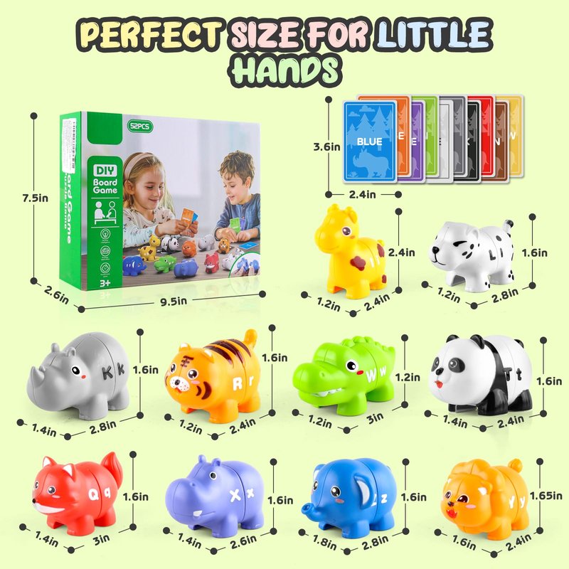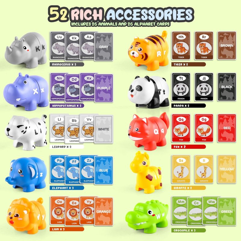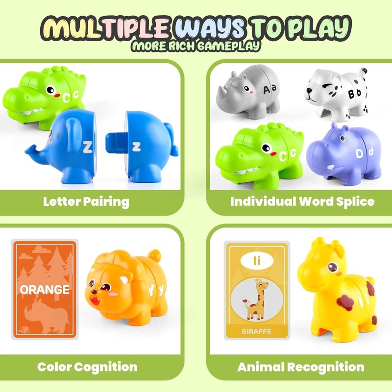- Multiple Ways to Play: Each animal can be taken apart and reassembled into upper and lower case letters or combined with others to form words. Kids can also use the learning cards to race and match objects to cards quickly, adding challenge to the game