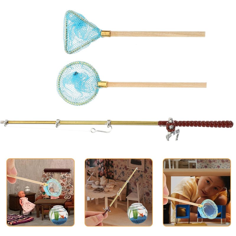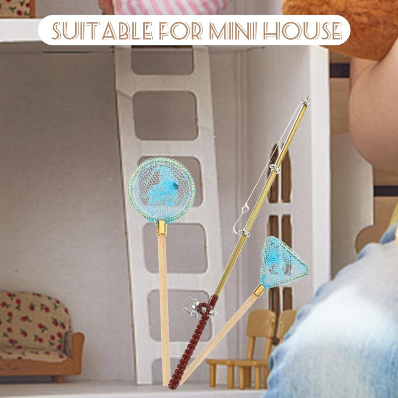 - Miniature Fishing Rod - This miniature fishing pole and fishing nets models set is house accessories, easy to place and versatile