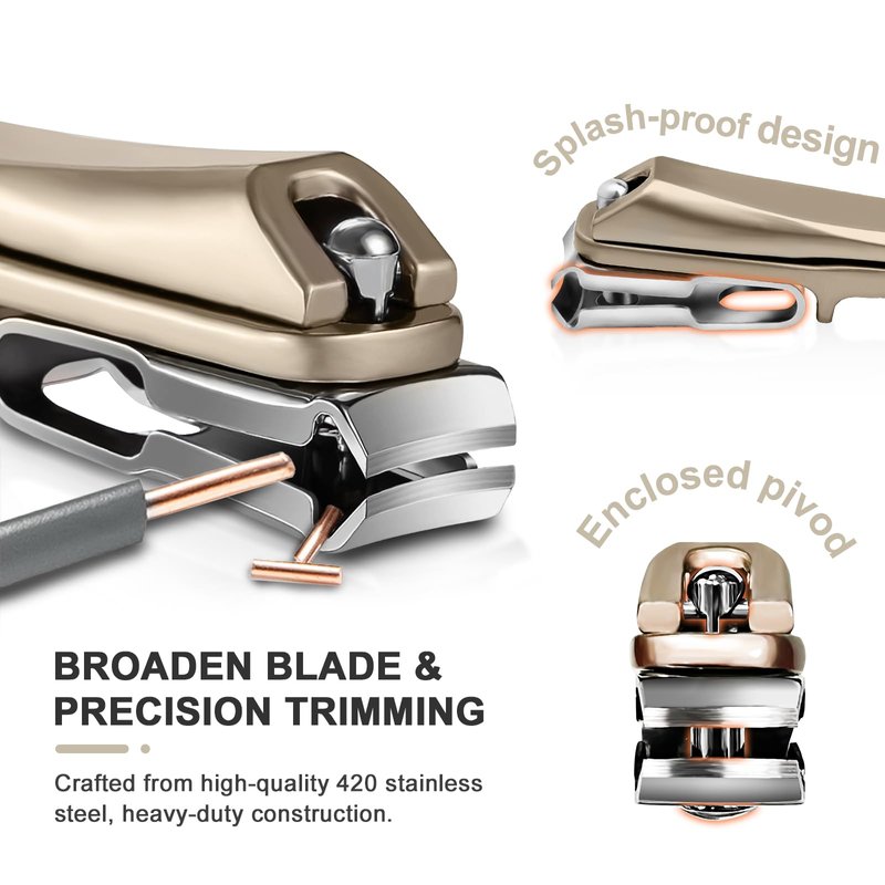 - 【Nail Clipper with Catcher】The splash-proof design is home to the nail clippings, which keep your workspace clean and tidy. This no splash nail clippers for men can efficiently gather nail debris, preventing splashes, eye injury. Simplify your nail care routine and achieve a salon-like pedicure experience at home with just this nail nippers.