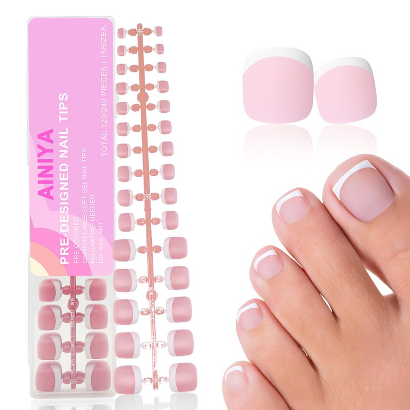 Toenail tips for toes are a simple yet effective solution for enhancing the appearance of your feet. These artificial nail coverings are designed to slip over your natural toenails, instantly transforming them into a perfectly polished and uniform look. Whether you're seeking a classic French manicure style or a vibrant pop of color, toenail tips offer a wide range of options to suit your preferences. Made from durable materials, they resist chipping and peeling, ensuring your toes remain flawless for weeks. Ideal for those with brittle or discolored nails, toenail tips provide a seamless and natural-looking finish. Easy to apply and remove, they allow you to switch up your look effortlessly. Embrace sandal season with confidence and flaunt beautifully manicured toes that will turn heads. Elevate your pedicure game with these versatile and affordable toenail tips.