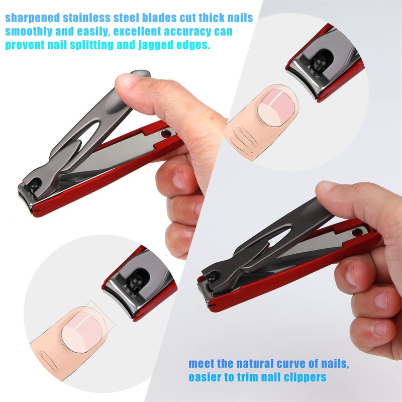 - Heavy Duty Fingernail Clippers with Catcher - The catcher nail clippers design is aimed at preventing nails from splashing in process of nail clipping, don't need to worry about nail scraps splashing on the floor, and can flexibly cut and finely polished nails in the room and keep neat. perfect for the elderly, athletes, arthritic, men, and Women.