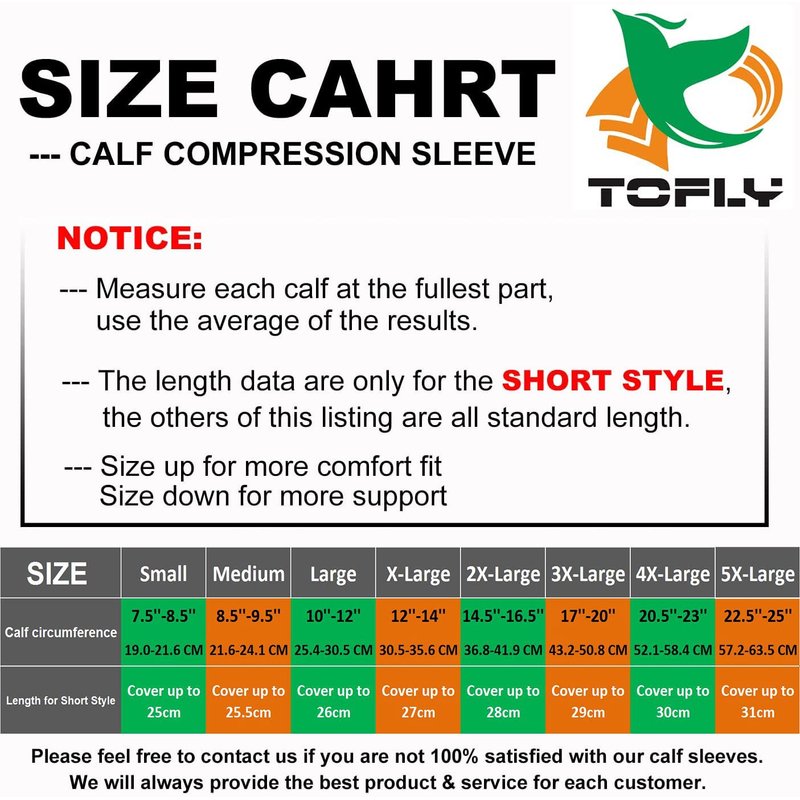 - ★★★ 【GET PERFECT FIT ACCORDING TO SIZE CHART】Measure the thickest part of your calf then compare to the size chart of left images to get perfect fit. The sizes include Small, Medium, Large, X-Large, 2X-Large, 3X-Large, 4X-Large, 5X-Large and carefully measured to ensure an exact fit. So , whether you already have other calf sleeves, please try ours this time, as we provide "BUY 100% RISK FREE" Service, so why not to see whether these are better for you?