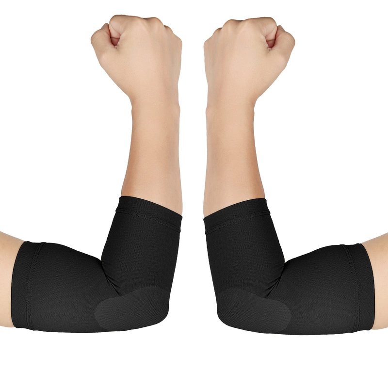 - Premium Fabric with High Elasticity & Breathability: Our thin elbow compression sleeve utilizing Germany specialized fabricating machinery and medical grade fabric is extremely durable and soft; Super breathability keeps your arm dry all day long. 78% Nylon and 22% Lycra Spandex highly flexible knitted fabric for a carefully regulated amount of compression based on medical standards, they will withstand washing and won’t lose its function over the course of time like many other products