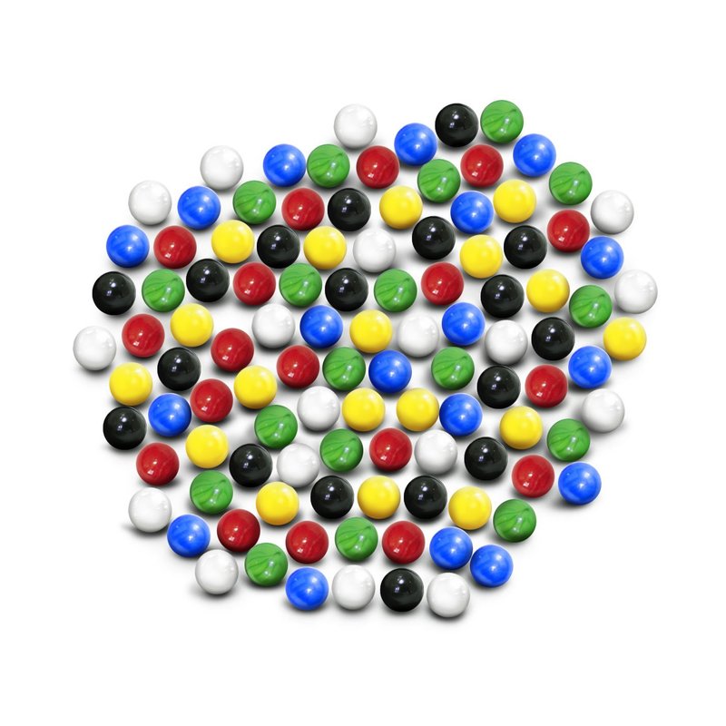- Set of 72 glass marbles, 6 different and vibrant colors: Black, White, Yellow, Blue, Green and Red