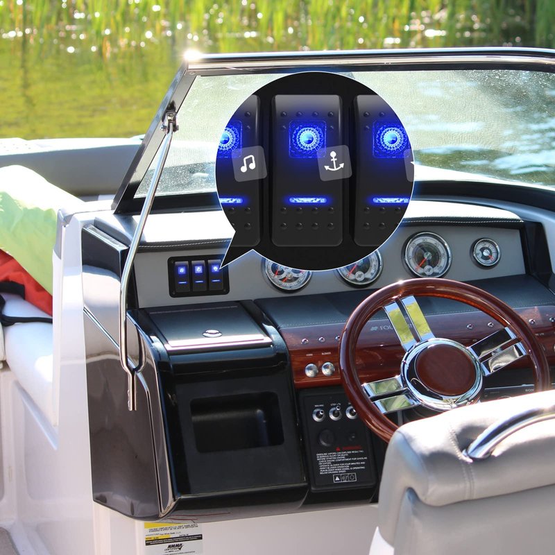 - [Waterproof Switches & Aluminum Panel]: The item is made of waterproof switches and aluminum panel, which is sturdier and more durable than plastic panel. The item has a unique technology in the waterproof structure. The ultra-thin silicone film prevents water from entering the inside of the switch panel, ensuring the inner cavity is dry, avoiding short circuits, and making the boat rocker switches safer during use.