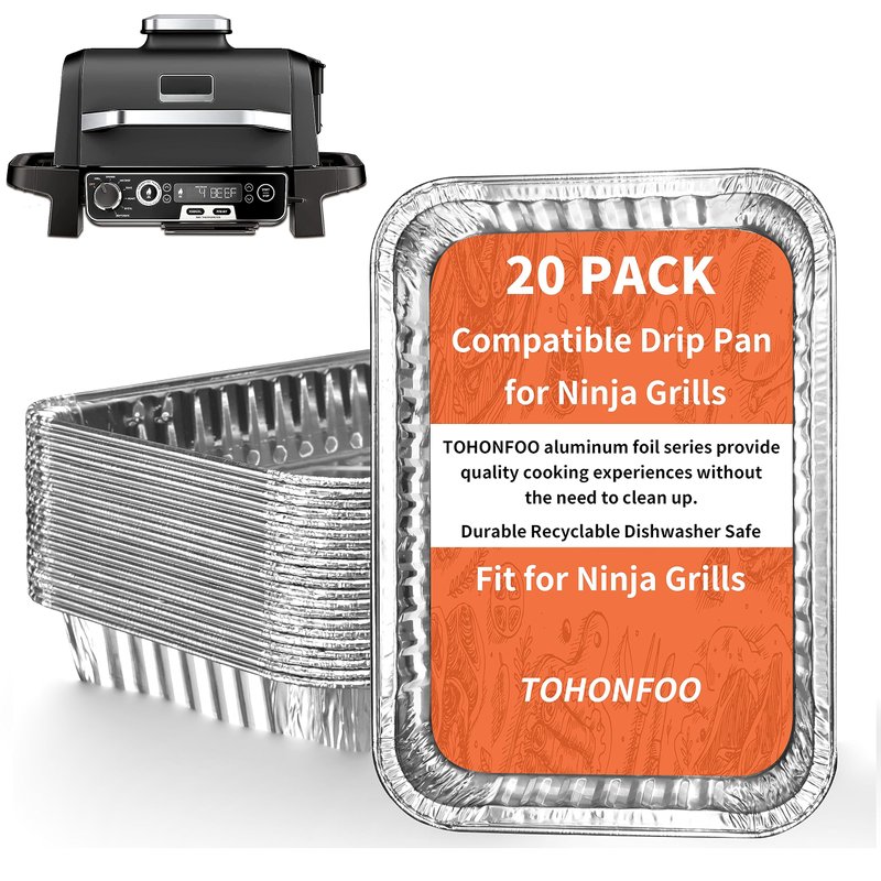 - 【Safe & Durable Material】Made of 100% recyclable and heavy-duty aluminum foil that doesn’t leak, Food-Grade. With these 20-pack grills' rear grease cup liners, keep your ninja grill clean and save a ton of headaches messing with washing it out.