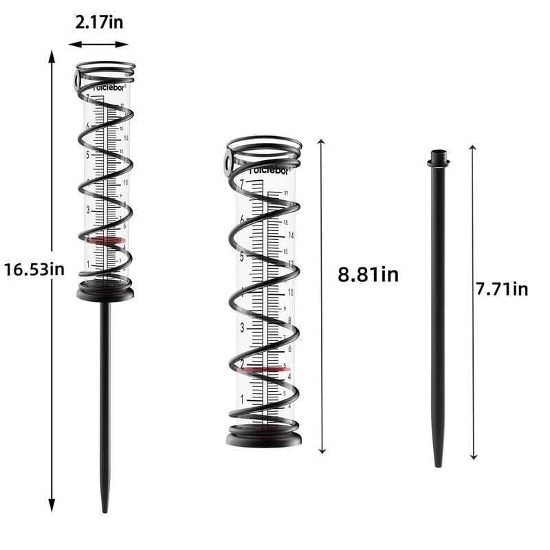 Toiclebor 7" Capacity Rain Gauge Outdoor,Hanging or Ground Stake,Detachable Rain Gauge Tube with Metal Stake,Matte Black(RM-BS7-001)
