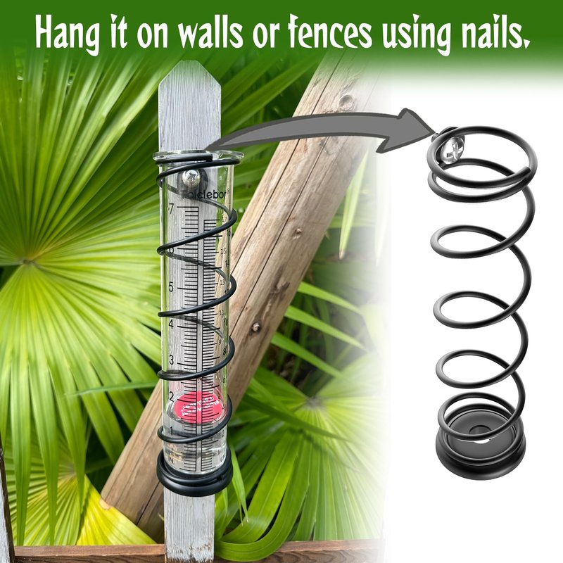 - 【Rain Gauge Outdoor】Inserted on the ground or hung onto a wall with nails using the ring on the top side of the holder.