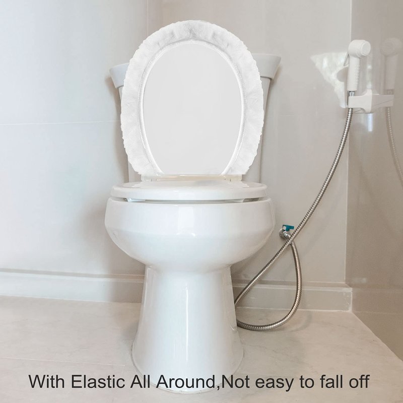 Our toilet lid cover feature soft material made of polyester . Our toilet lid covers are easy to clean and can conveniently be thrown in any washing machine! Wash on cold with mild detergent and lightly tumble cool. Our toilet lid covers provide coverage from scratches and damage, and prevent your hands from touching a cold toilet seat!