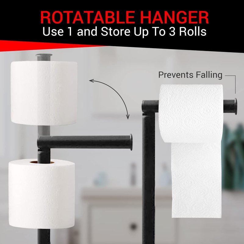 - CONVENIENT STORAGE OPTION: The base of this toilet paper holder provides ample storage space for additional rolls of toilet paper, ensuring that you're never caught without a spare when you need it. Keep your bathroom organized and clutter-free with this practical and stylish storage solution.