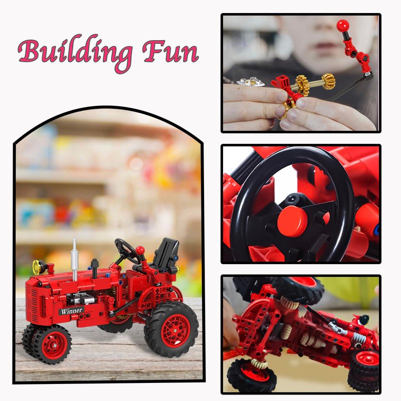 - 1/12 CLASSIC FARM TRACTOR TOY: This building toy set includes 302 pcs to build tractor model with realistic design details for kids. Farm tractor set comes with detailed colorful step by step instruction manual.