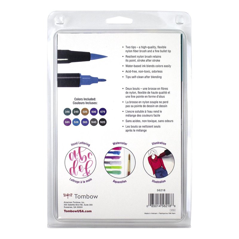 Tombow 56218 Dual Brush Pen Art Markers, Bohemian, 10-Pack. Blendable, Brush and Fine Tip Markers